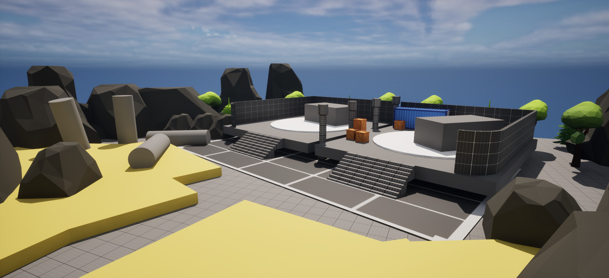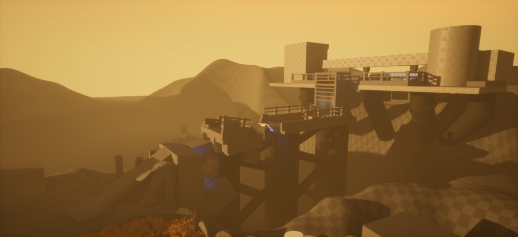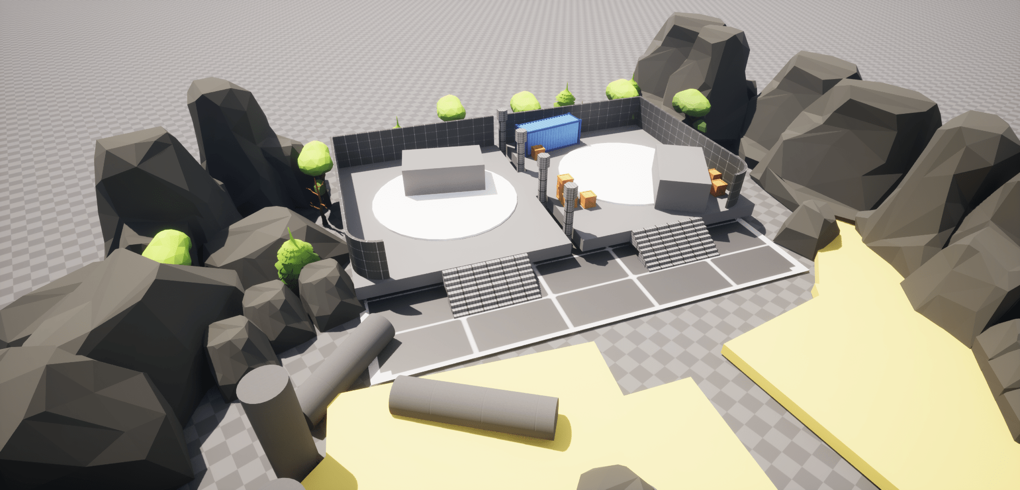 - To fix this, I added elevation by placing key buildings on raised platforms. This not only improved the visual composition but also introduced verticality into exploration and combat.