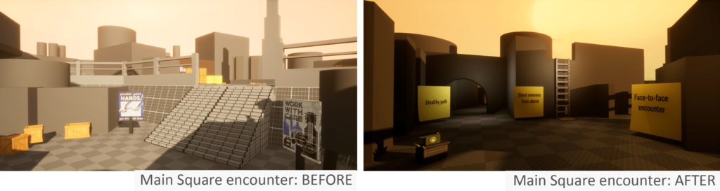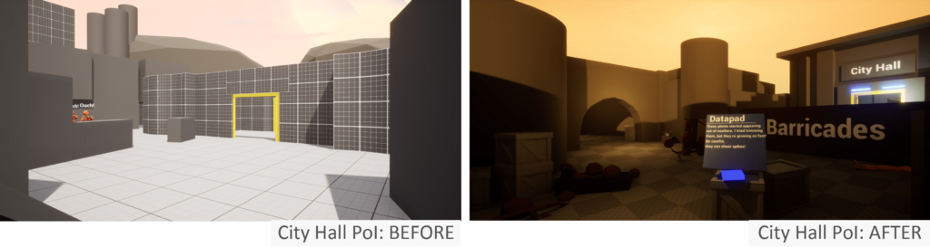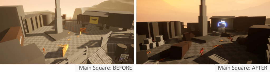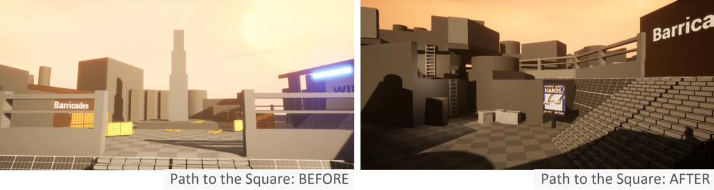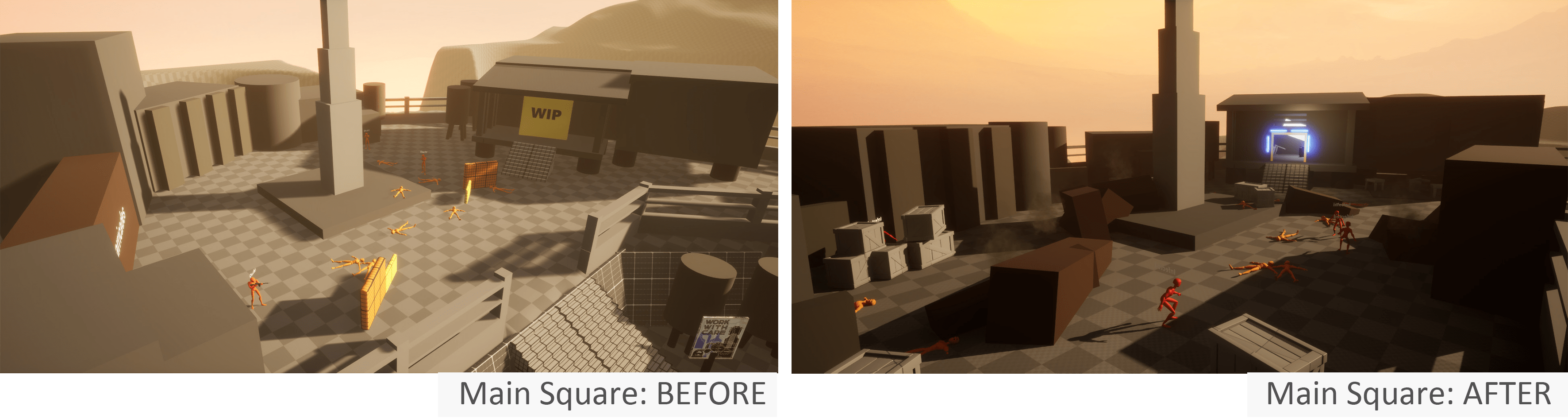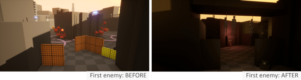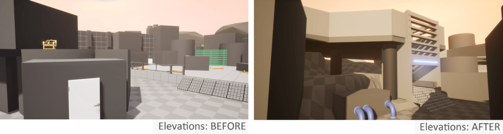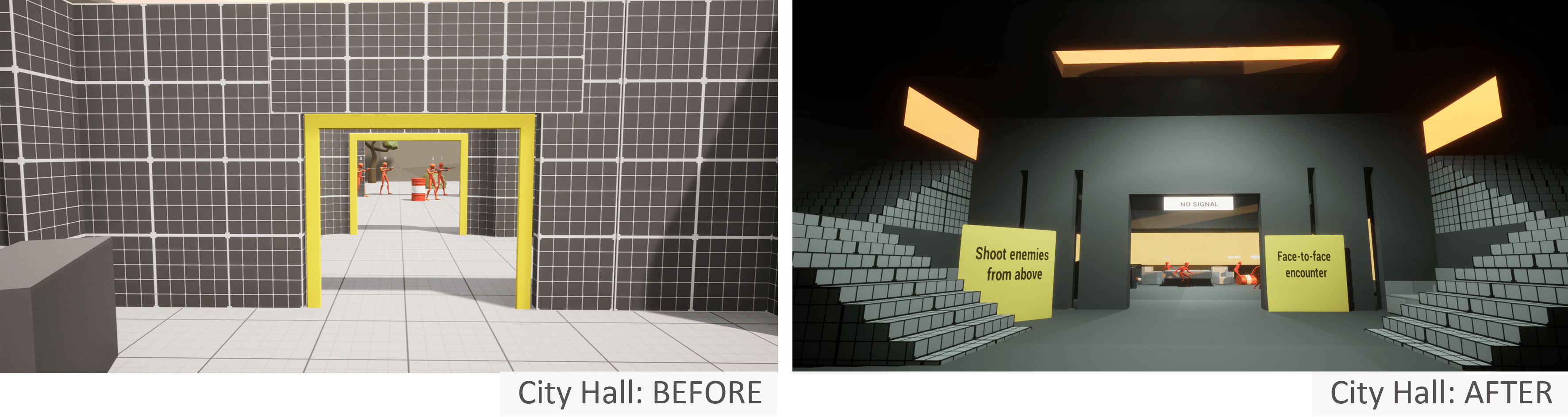 The level became more readable, grounded, and tactically interesting. The updated layout offered players more strategic options during combat, while lighting and visual cues helped guide navigation and reinforced the setting’s mood.