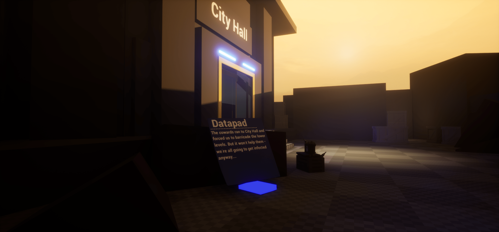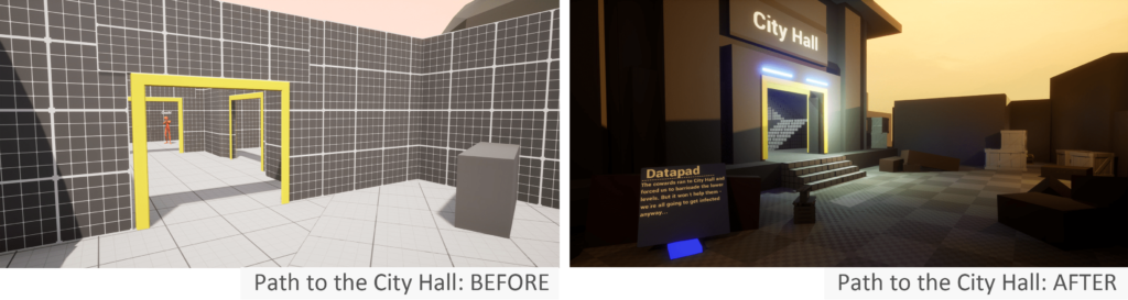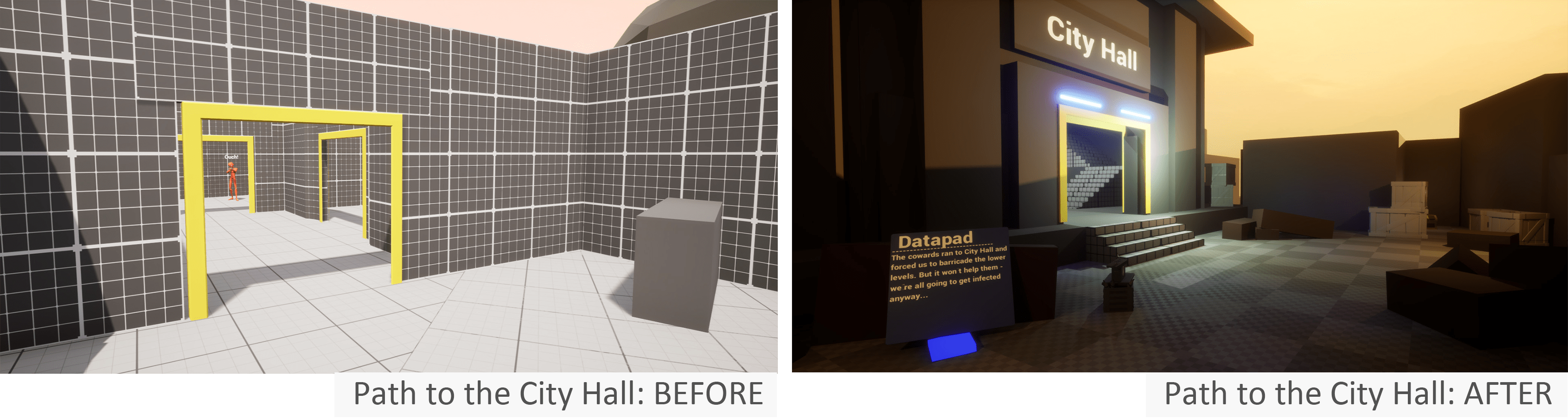 This iteration focused on deepening the player experience in the City Hall and Laboratory areas by: