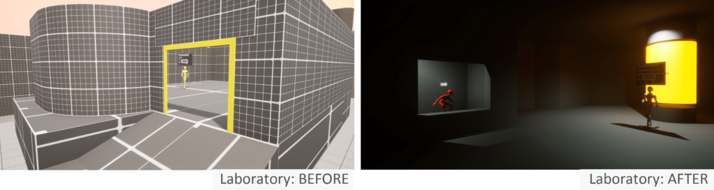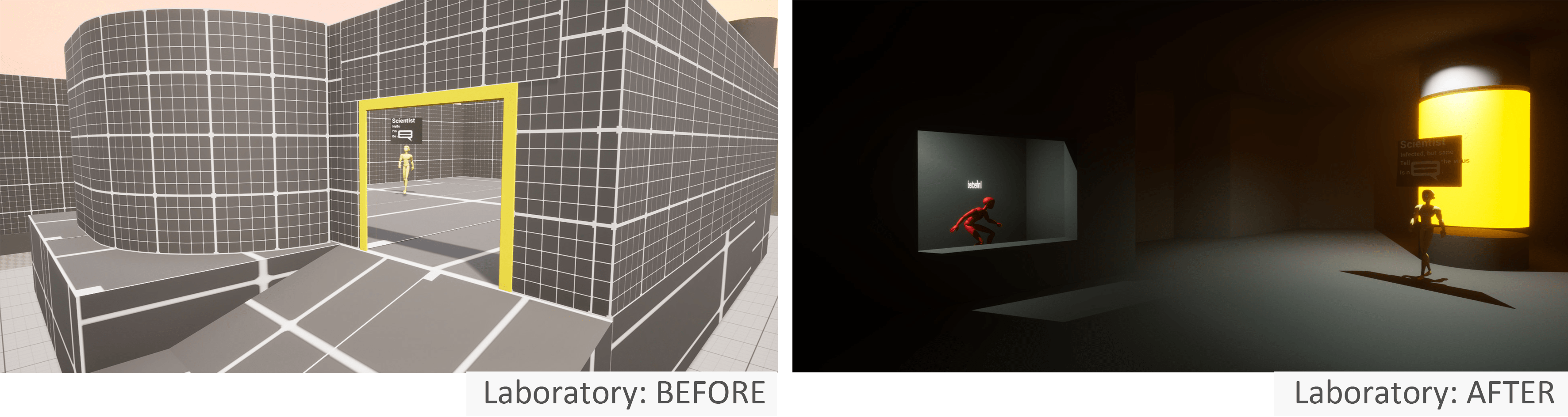 - Expanded the Laboratory with new rooms, lighting setups, and locked doors. Introduced a friendly but initially unsettling NPC to create tension and a payoff through dialogue.