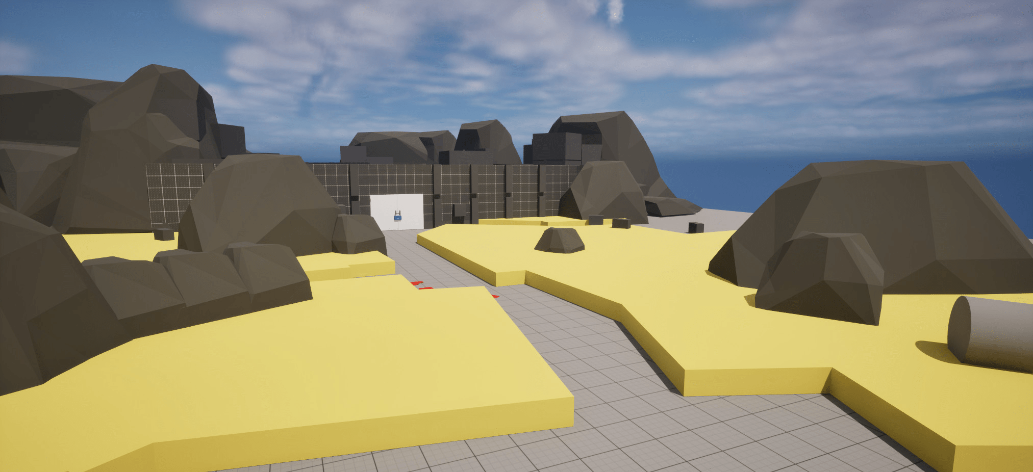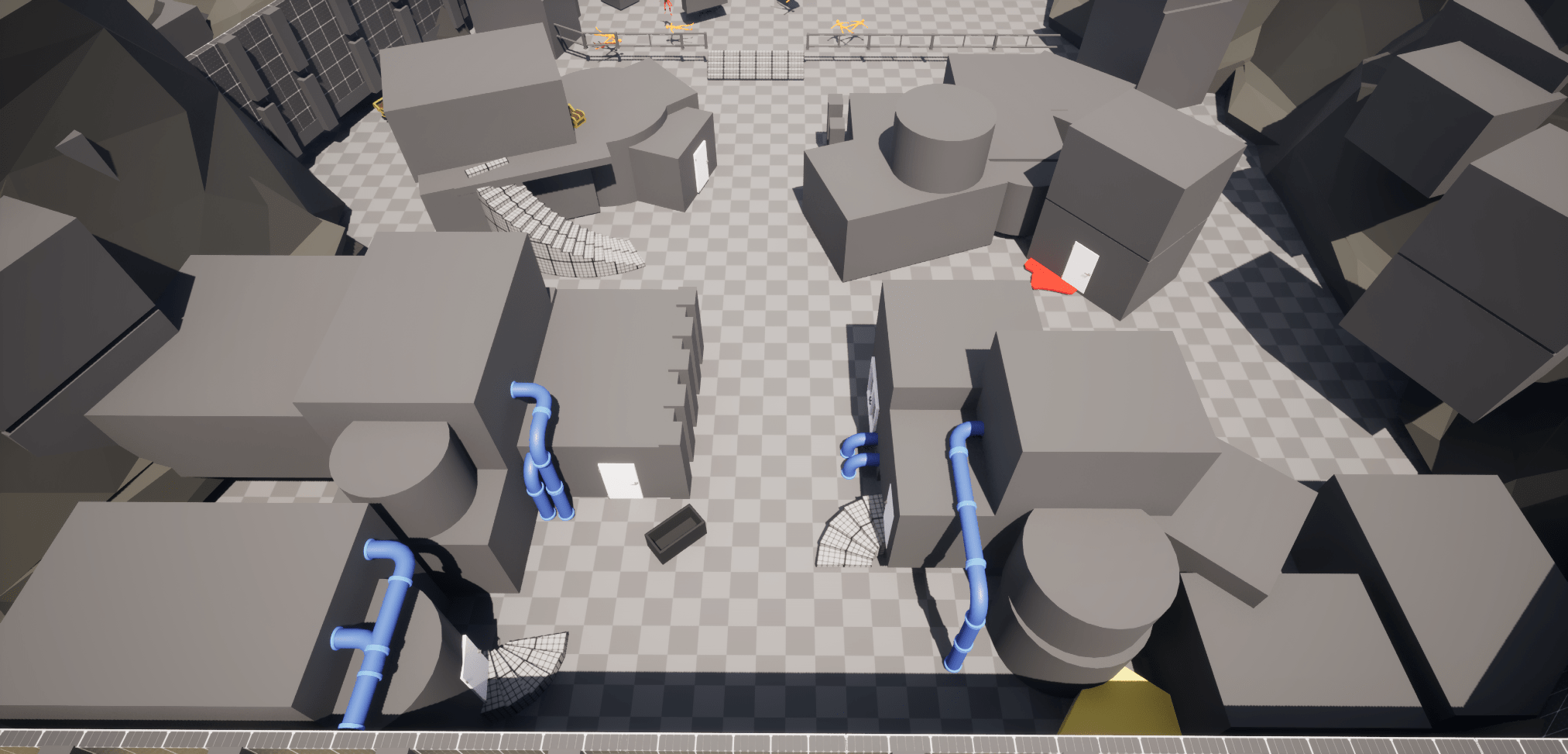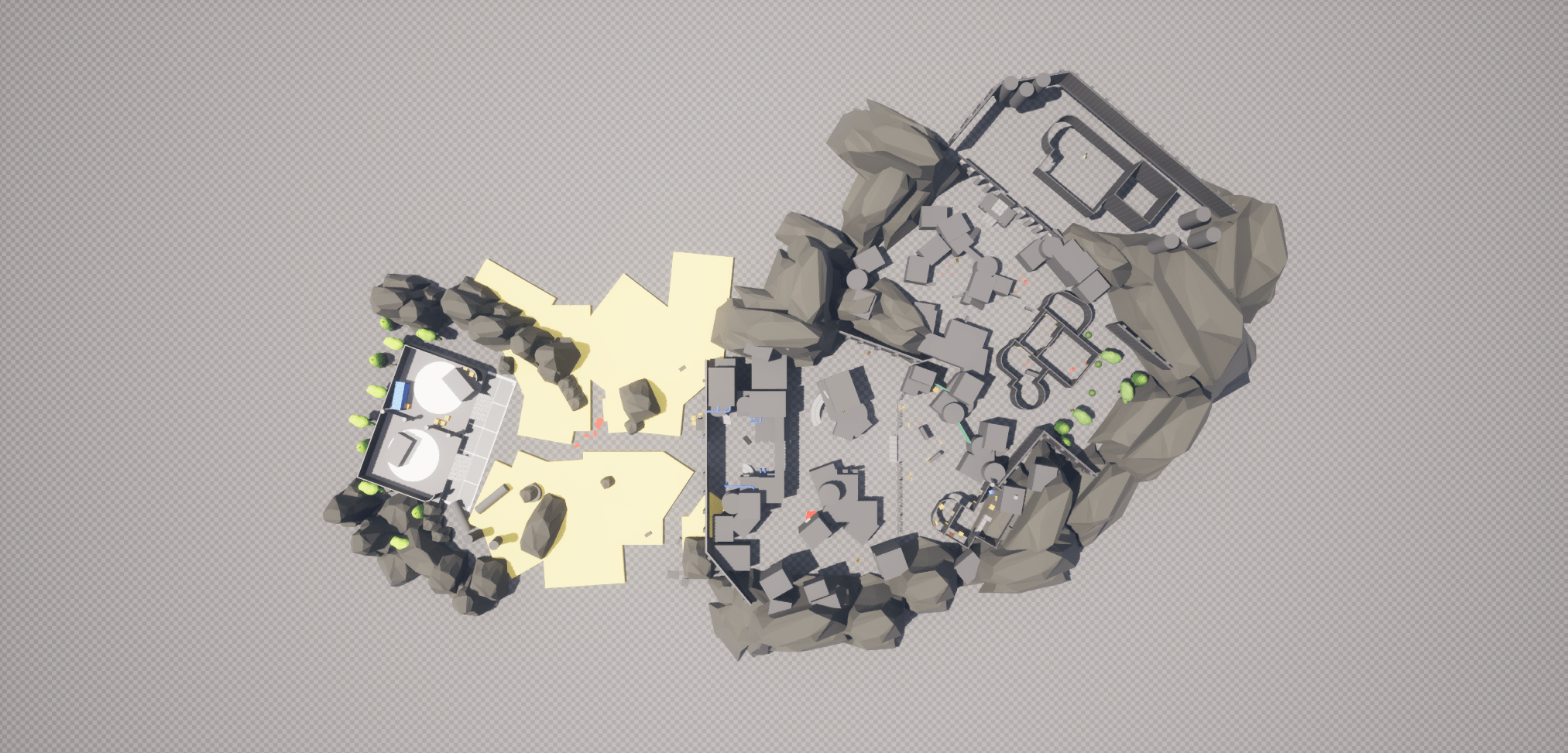 - Transitioned from 2D map to UE5 and blocked out the level using simple geometry and color coding to reduce clutter.