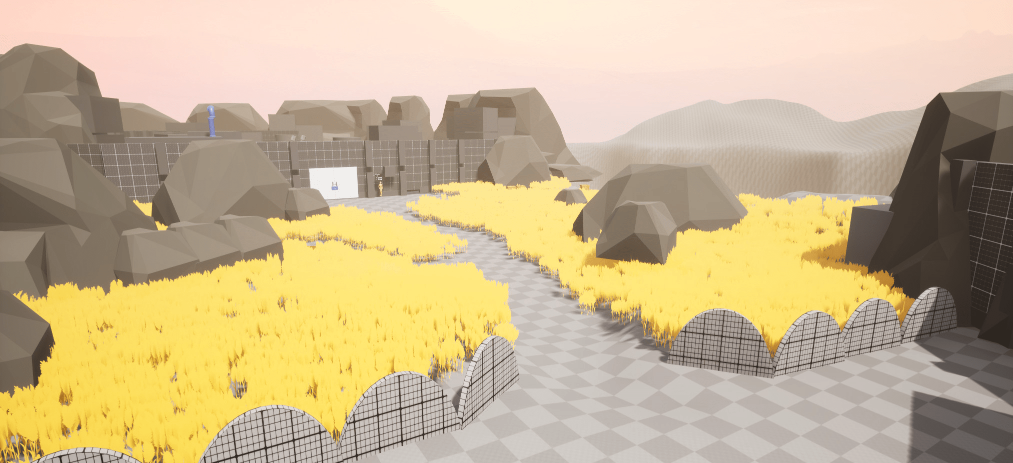 With the core layout validated during the roughout phase, I moved into the blockout phase to enhance gameplay clarity and player guidance. The focus was on integrating early gameplay systems, refining spatial readability, and shaping the overall tone using lighting, atmosphere, and simple environmental details like foliage.
