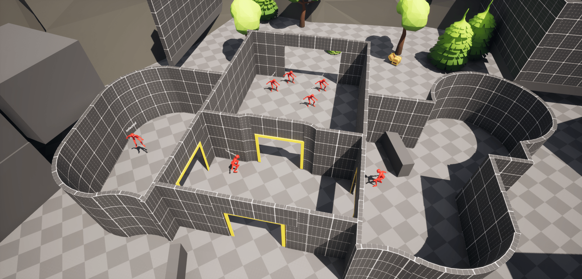 - Color-coded non-interactive props (e.g. doors) in neutral gray to reduce visual noise.