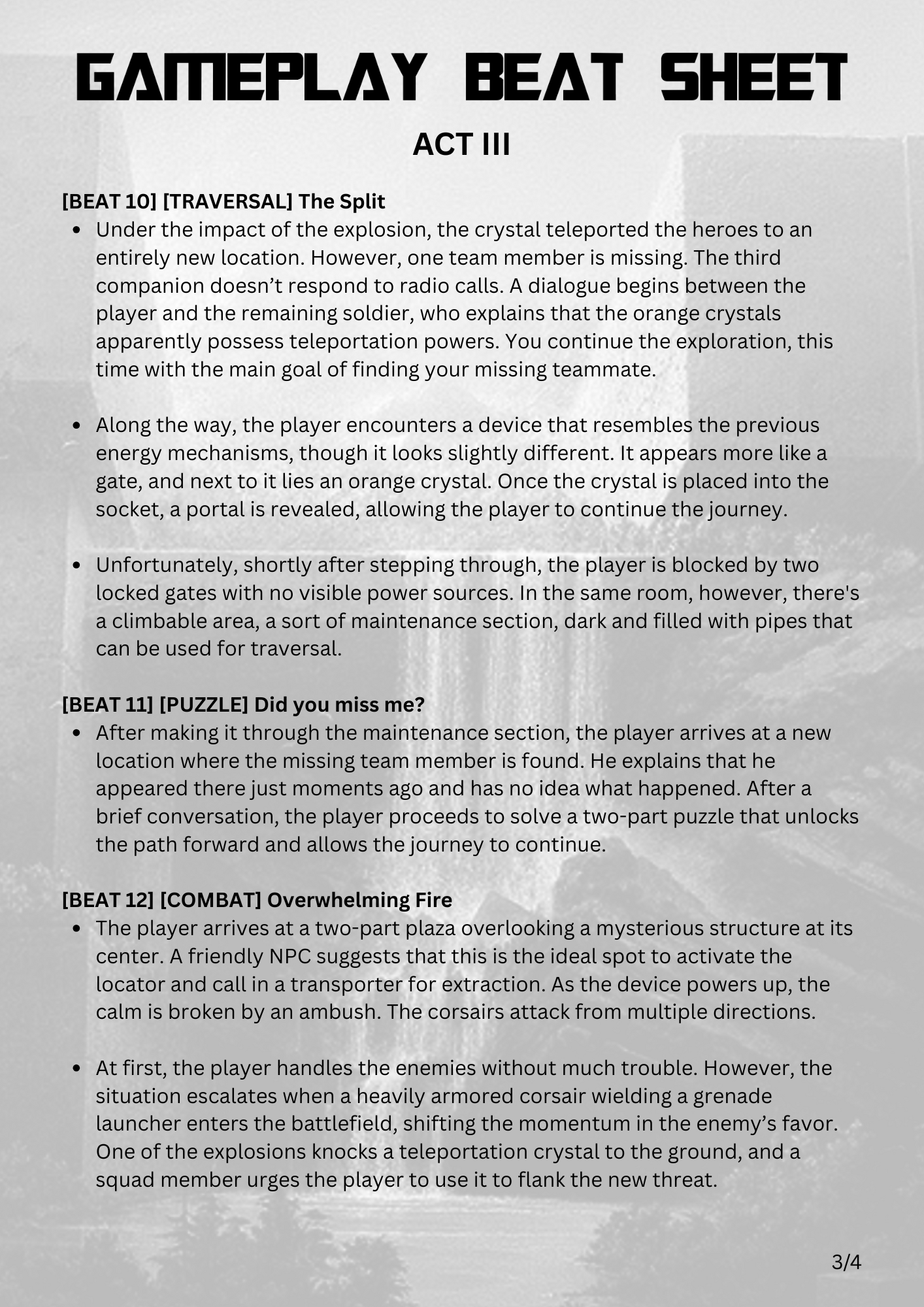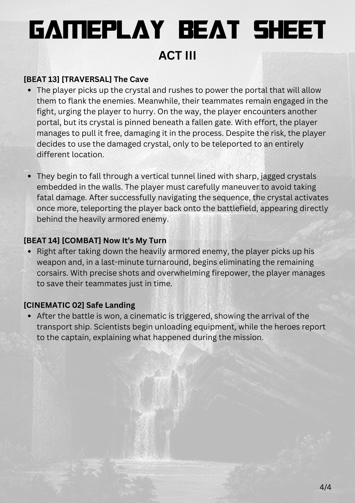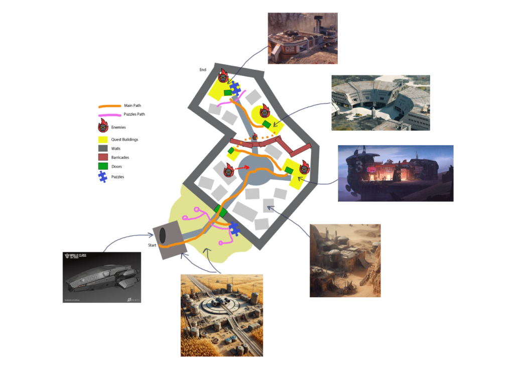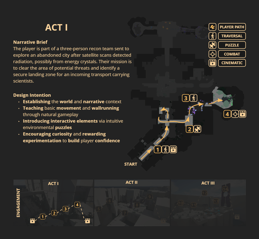 Additionally, I took it a step further by applying my expertise in environmental storytelling and narrative structure to enrich the level design. This allowed me to create a more immersive, hybrid experience that blends action gameplay with worldbuilding and narrative depth.