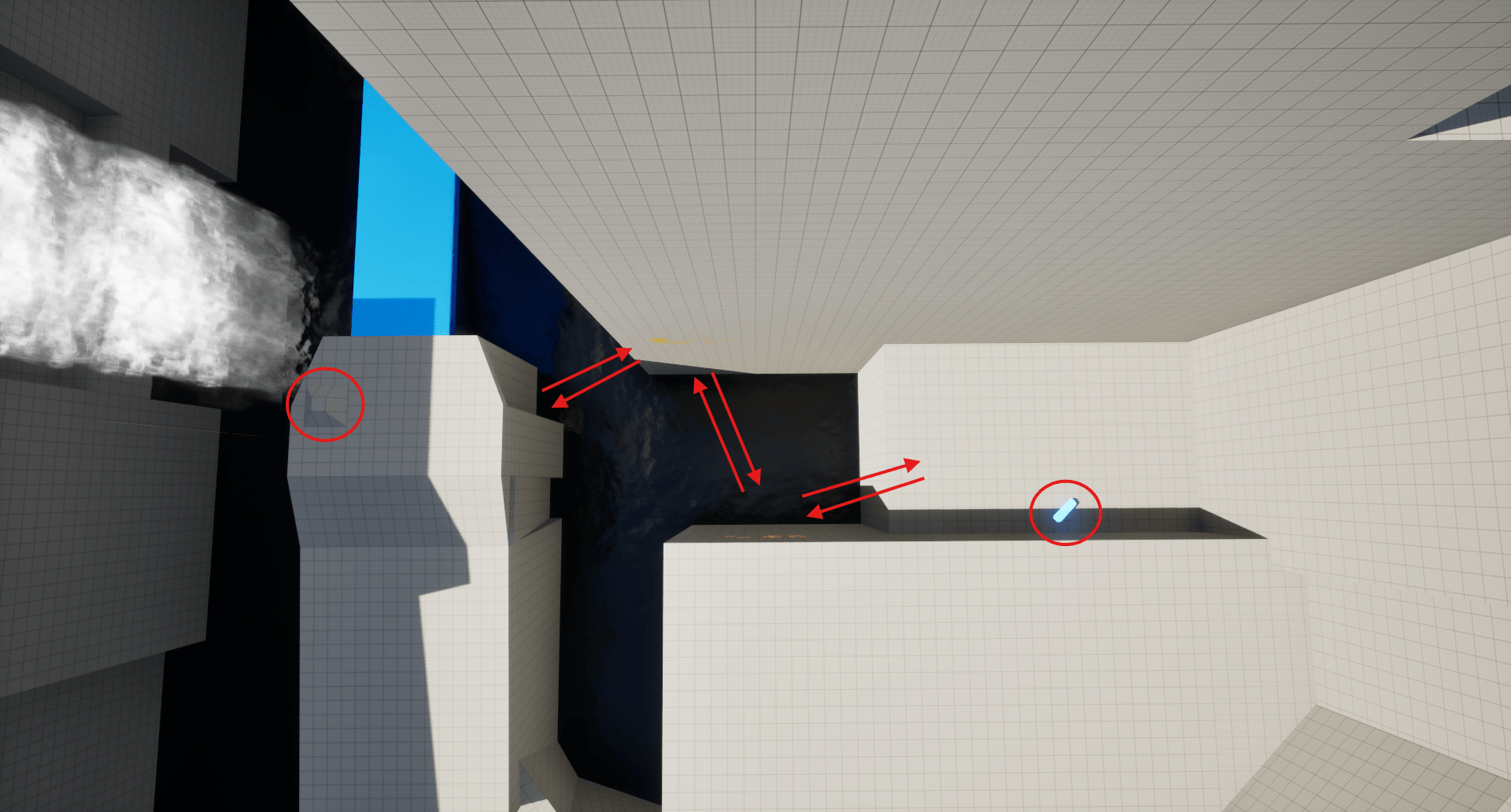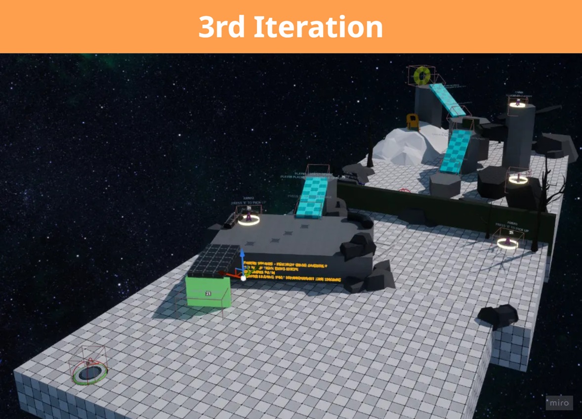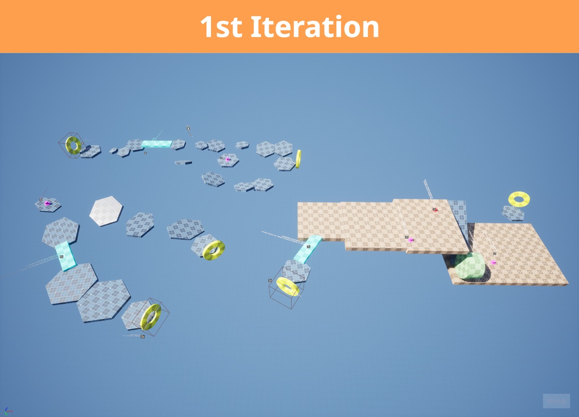 1. A good part of my traversal mechanic iterations were about implementing new mechanics, learning how to make them transition smoothly, and finding the right ratio to not make the traversal zones repetitive.